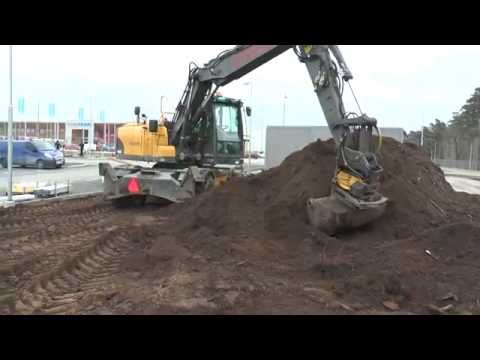 A Volvo EW160C Excavator February 2015 at a mound of earth to be smoothed out
