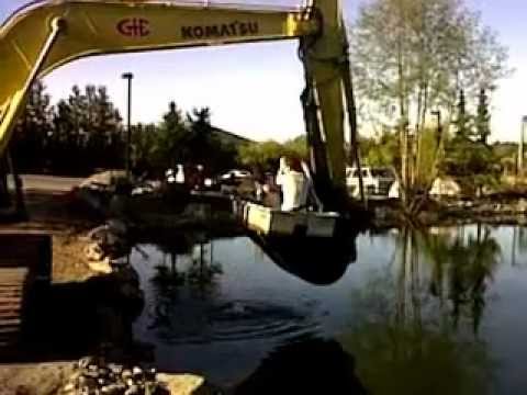 Flipping aluminum boat with excavator