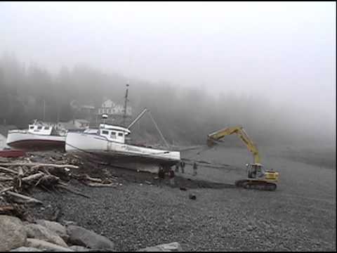 Fishing Boat Dragged by an Excavator in Harbourville, NS