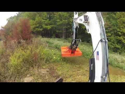 Bobcat Excavator Mowing a Boat Run, Bush Hog Mulcher Grinder